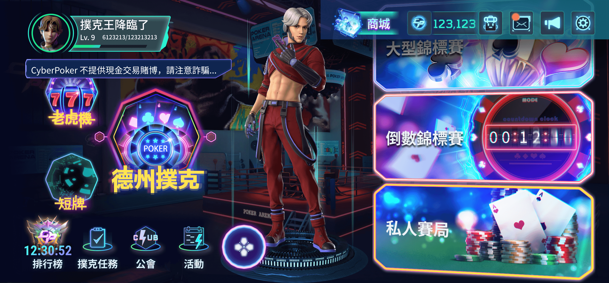 德州撲克手遊挑戰在於創新 3D UI 和互動設計。3D 的撲克手遊在市場上並不常見,我們需要研究並設計適合單手或雙手操作手機的人因工程。遊戲畫面需保持簡潔直觀,確保玩家易於閱讀,避免類似市場上同類型產品的複雜界面。經過 2-3 輪調整和測試,我們推出了公測版。