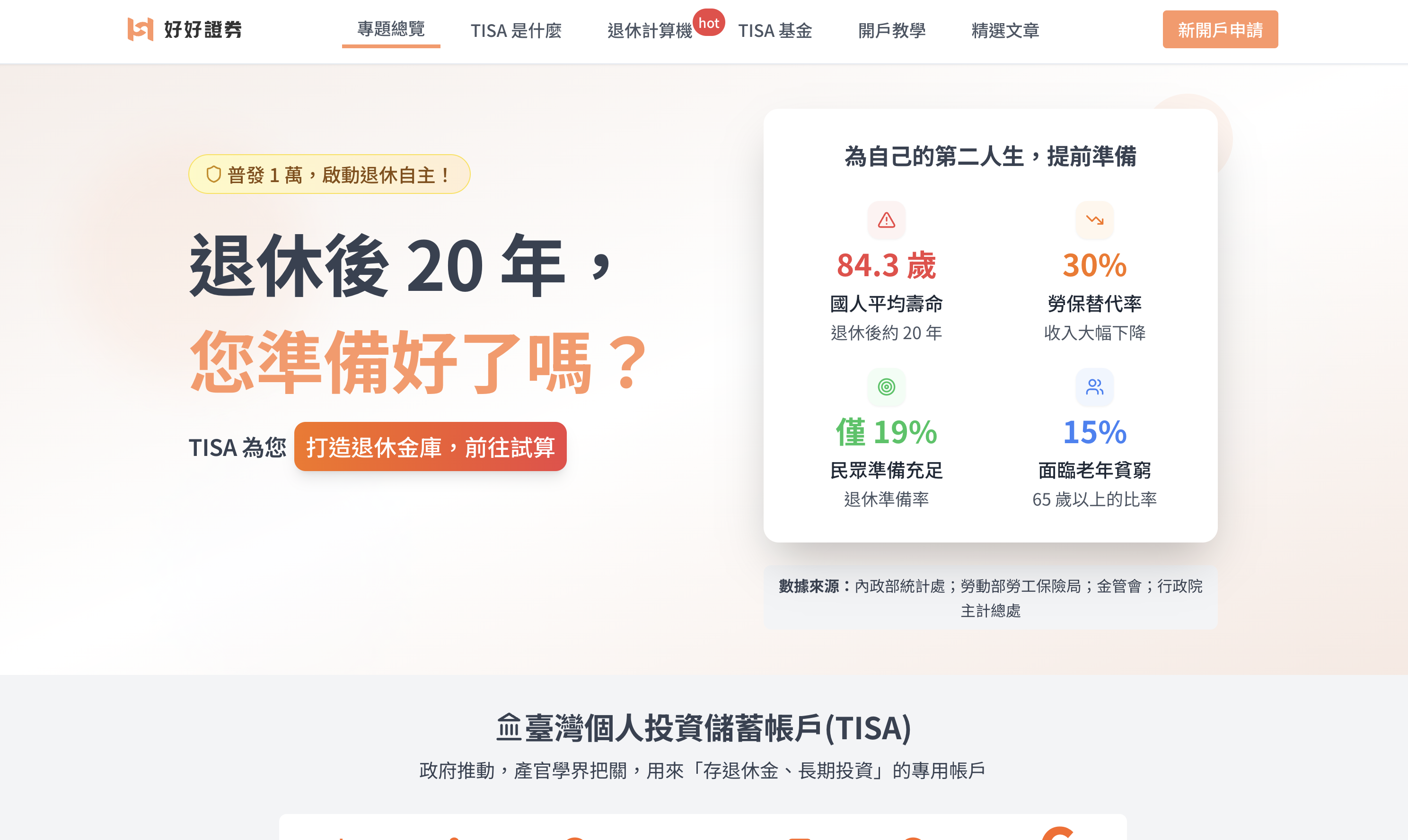臺灣個人投資儲蓄帳戶(TISA)是政府主導的退休金優惠政策,推動期間帶動大量首次投資者主動搜尋相關資訊——這是好好證券獲取新用戶的關鍵時間窗口。