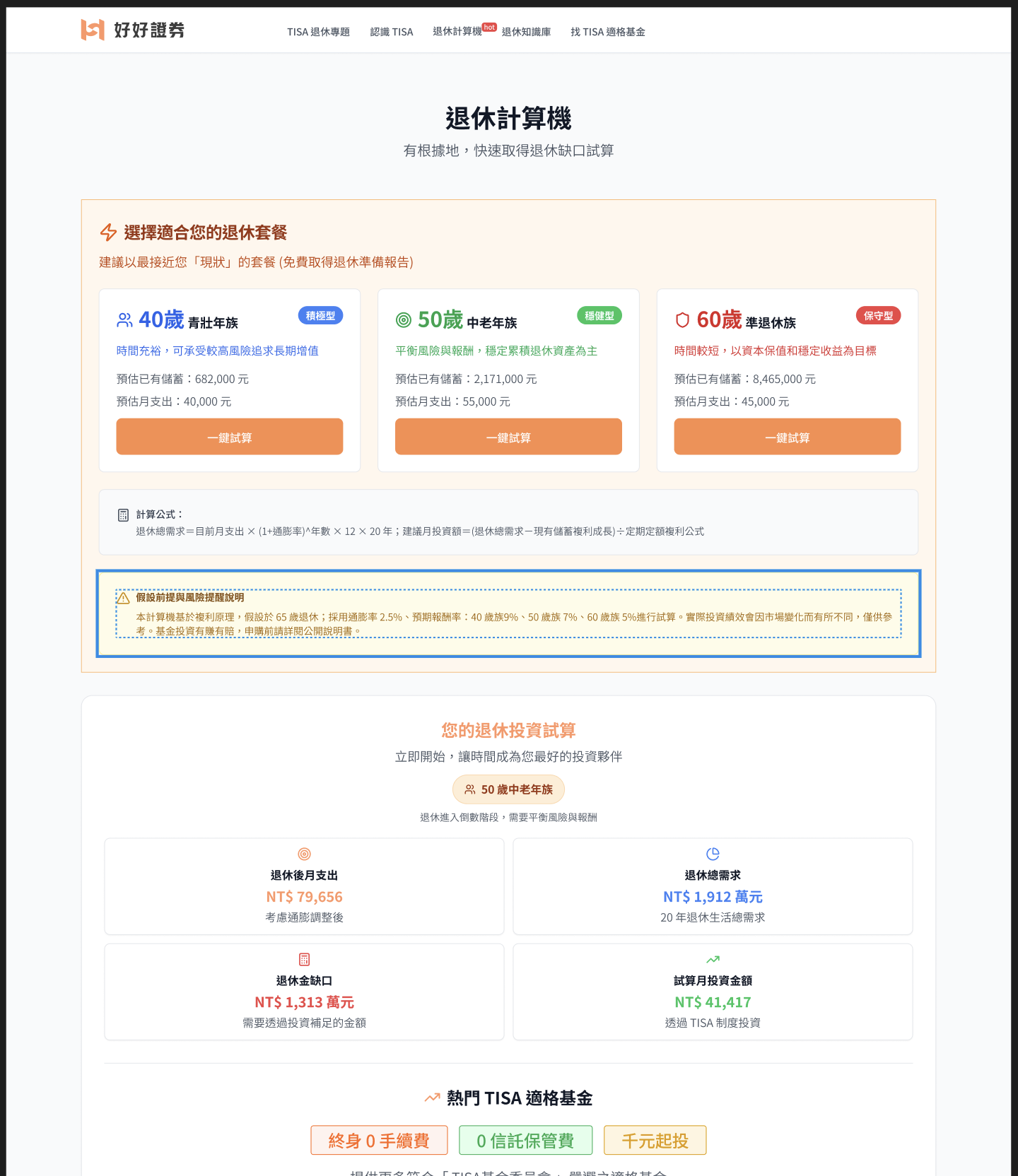 退休計算器是這條路徑的核心轉化工具: